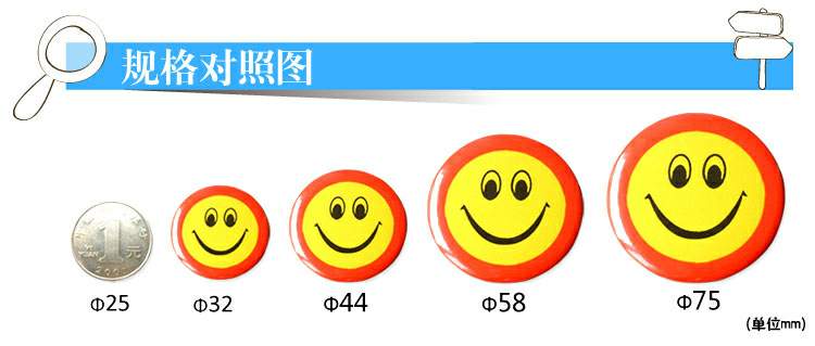說明:專為公司、團(tuán)體、機(jī)關(guān)、學(xué)校進(jìn)行胸章定制,形狀有圓形、長方形,有佩戴胸前的別章,有掛在脖子上的掛章,另外我們還制作胸章鏡子、胸章瓶啟、卡通胸章、磁性胸章等。