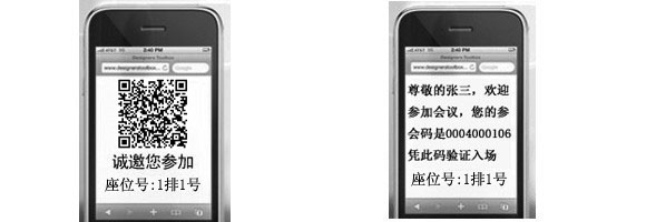 可對(duì)參與活動(dòng)嘉賓發(fā)送二維碼電子票邀請(qǐng)函,嘉賓可回復(fù)短信進(jìn)行參會(huì)確認(rèn),參會(huì)時(shí)只需在二維碼終端識(shí)別設(shè)備掃描,系統(tǒng)即可顯示來賓信息,無須人工干預(yù),實(shí)現(xiàn)快速簽到。
